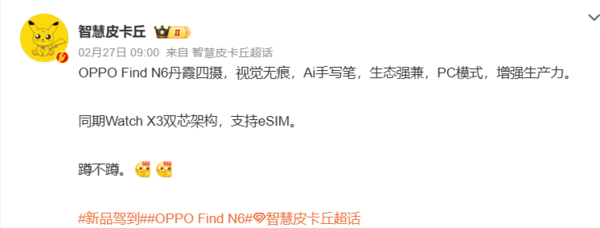 值得关注的是,OPPO Watch X3已在国内电商平台开启新品预约,将与OPPO Find N6大折叠手机同期发布。据悉,OPPO Find N6将成为首款搭载骁龙8 Elite Gen5处理器、首款配备2亿像素镜头、首次支持AI手写笔的大折叠机型。
